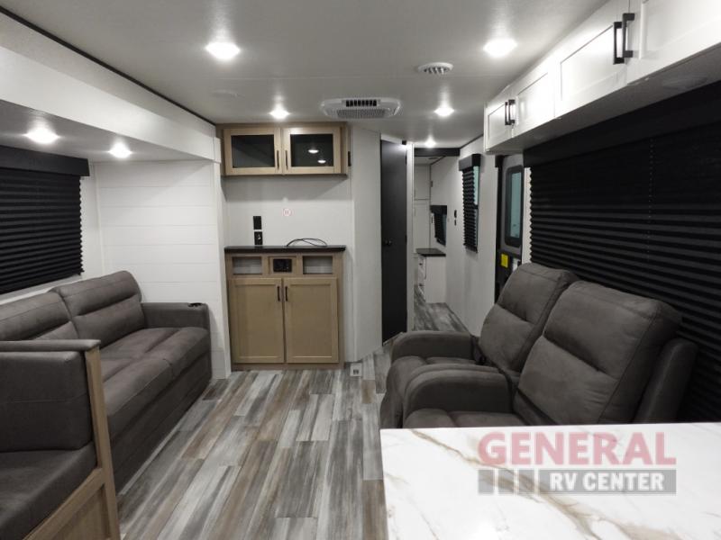 This model features two spacious slide-outs, dramatically expanding your living space to provide a roomy and inviting environment. Inside, you'll find accommodations for up to four people, making it ideal for family getaways or a cozy retreat for couples. The thoughtfully designed rear kitchen layout offers ample counter space and modern appliances, perfect for preparing meals on the go. The living area is equipped with plush seating and a state-of-the-art entertainment system, ensuring relaxation after a day of adventure.