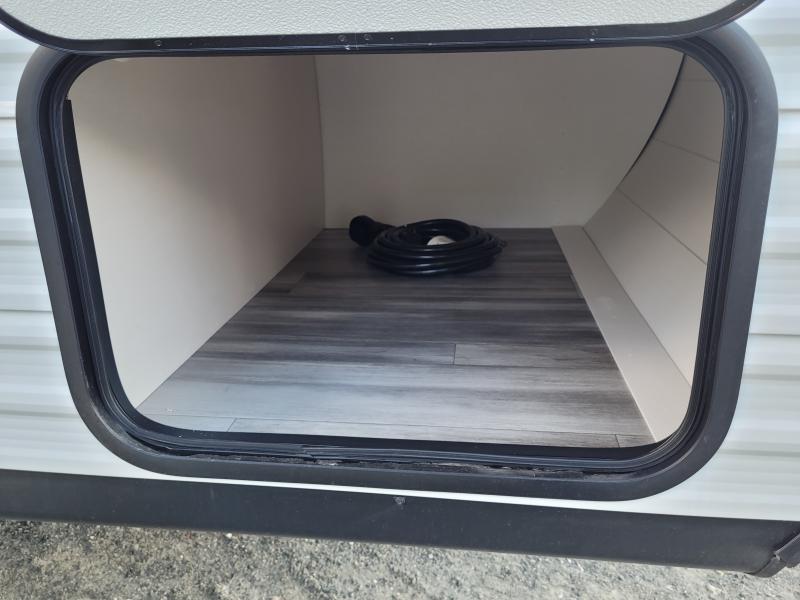 Inside, you'll find a cozy setup that maximizes every inch of space. The JayFlight 175FQ features a comfy queen-sized bed, a fully-equipped kitchen with a fridge, microwave, and stove, and a bathroom with a shower. The dinette area is perfect for meals or game nights, and it easily converts into an extra sleeping space if needed. With plenty of storage options, you can bring along all your essentials without feeling cramped.
