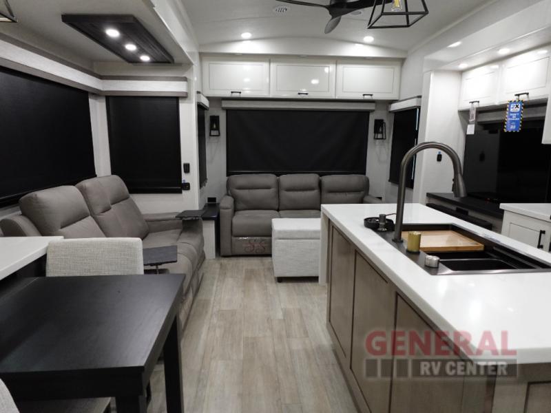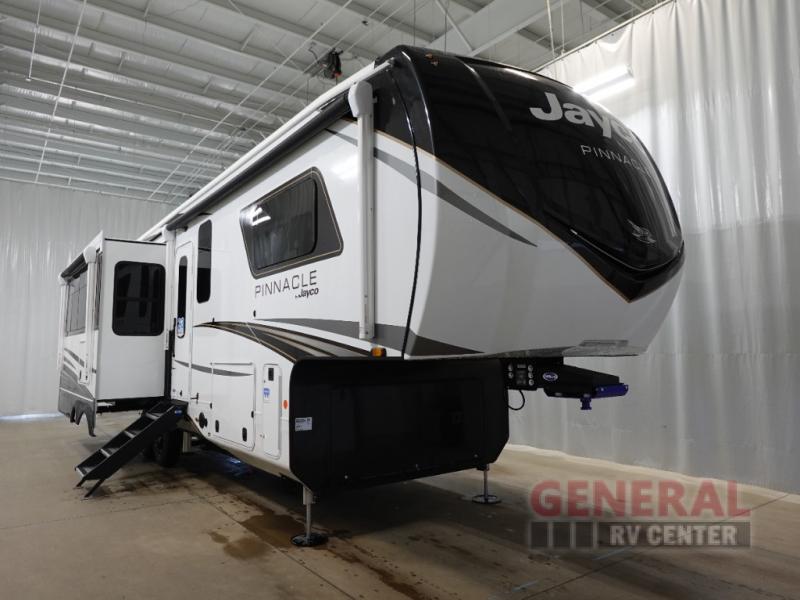 Introducing the 2025 Jayco Pinnacle 32RLTS Fifth Wheel, a luxurious and spacious RV designed for those who crave comfort and style on the road. With its impressive length of 30 feet, this RV offers ample space for relaxation and entertainment. The Pinnacle 32RLTS features three slide-outs, maximizing the living area and providing a roomy, open feel that is perfect for both short getaways and extended adventures.