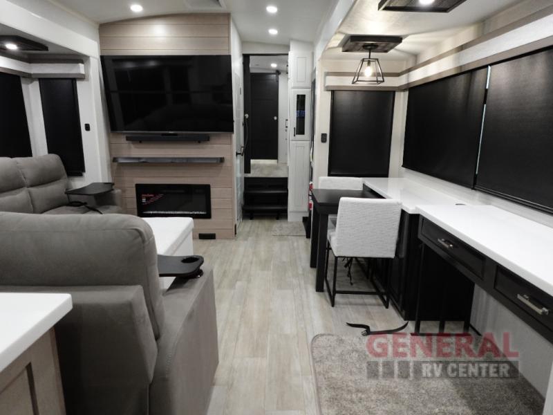Weighing in at 7,176 kilograms, this fifth wheel is built for stability and ease of towing. The Pinnacle's thoughtful design includes a spacious living area, a fully equipped kitchen, and a cozy sleeping quarters, ensuring you have all the comforts of home wherever you go. The high-quality finishes and modern amenities make this RV a standout choice for those who appreciate both style and functionality.