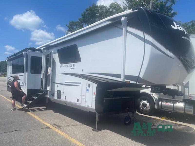 Discover the ultimate in luxury and comfort with the 2026 Jayco Pinnacle 38FBRK Fifth Wheel, your perfect home on wheels. This stunning RV, with its impressive length of 36 feet, is designed to offer you a spacious and elegant living experience. With three slide-outs, it provides ample room for relaxation and entertainment, making it an ideal choice for both short getaways and extended adventures.