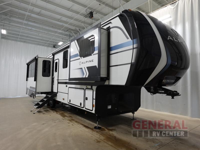 Introducing the 2026 Keystone RV Alpine 3303CK Fifth Wheel, a pinnacle of luxury and functionality for the discerning traveler. This meticulously crafted RV offers an exceptional blend of comfort and convenience, making it an ideal choice for those seeking a home away from home. With its impressive length of 31 feet, the Alpine 3303CK provides ample space for relaxation and entertainment, ensuring every journey is as enjoyable as the destination.