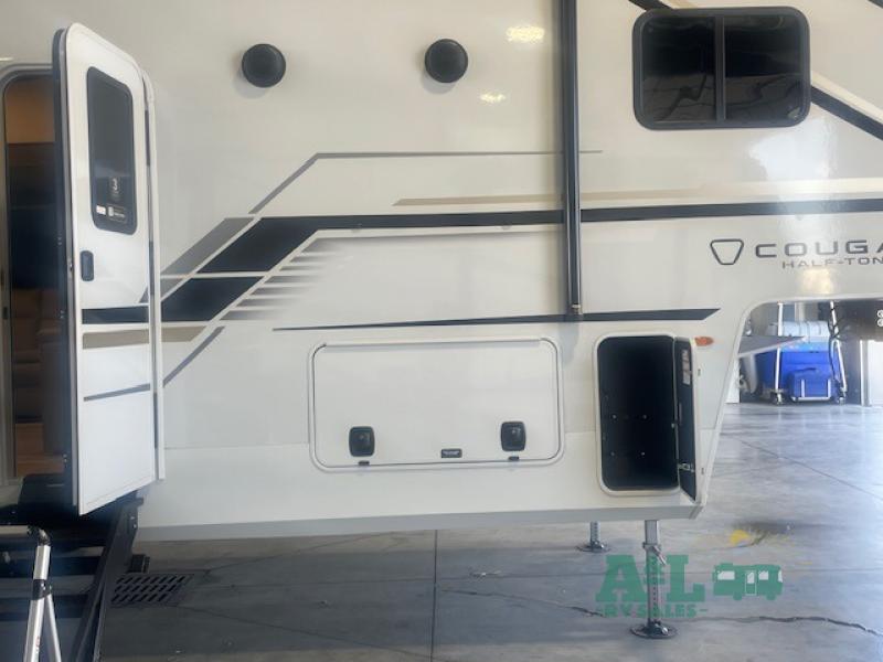 Inside, the Cougar 26RKE is thoughtfully designed to accommodate up to five people comfortably. The living area is enhanced by the slide-outs, creating an open and airy atmosphere perfect for relaxation and entertainment. The well-appointed kitchen features modern appliances and ample counter space, making meal preparation a breeze. The sleeping arrangements are versatile, with a cozy master bedroom and additional sleeping options to ensure everyone gets a restful night's sleep.
