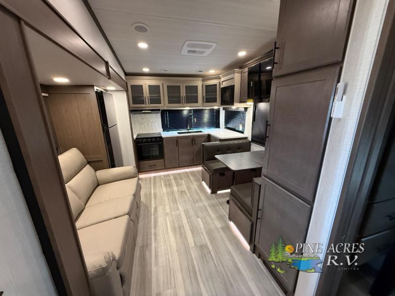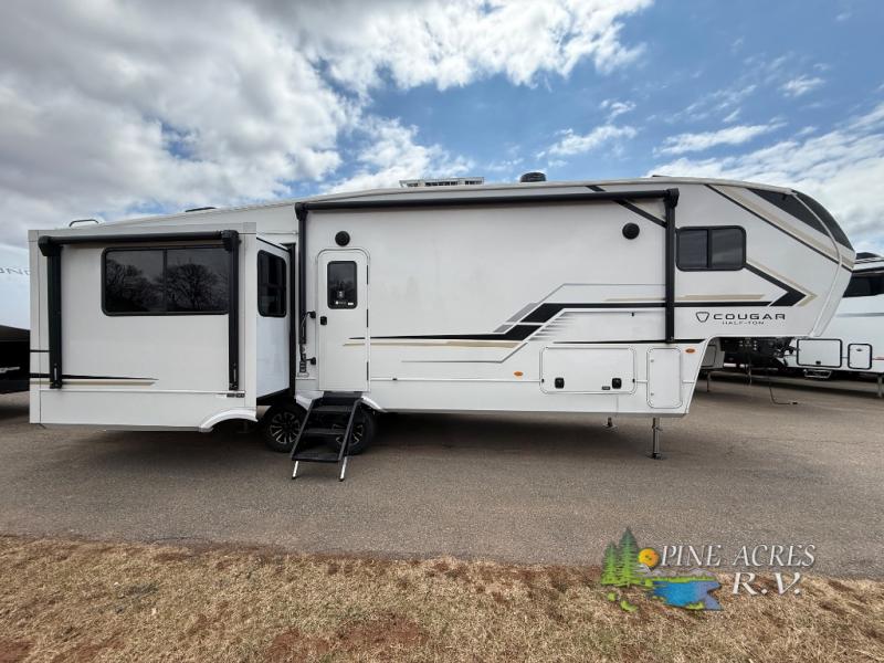 The Cougar Half-Ton 29MBD features two slide-outs, significantly enhancing the interior living space to ensure a comfortable and inviting atmosphere. Designed to accommodate up to seven people, this RV is perfect for family trips or group adventures. The intelligently designed floor plan includes a master bedroom, a cozy bunkhouse, and a convertible living area, ensuring everyone has their own space to relax and unwind. High-quality finishes and modern amenities create a home-like ambiance, making every journey a pleasurable experience.