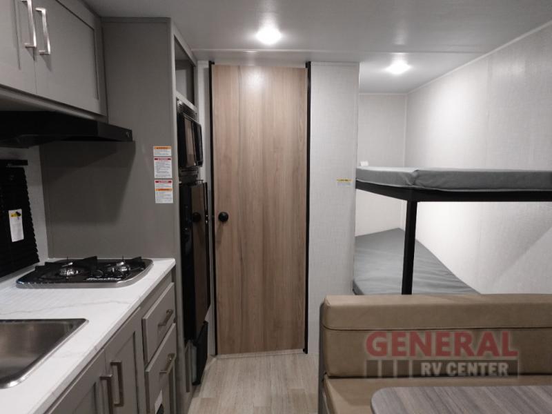 The Hideout Mini 175BH is thoughtfully designed to accommodate up to five individuals comfortably, making it perfect for family trips or group outings. Inside, you'll find a well-appointed interior that maximizes space and comfort. The intelligently designed layout includes sleeping arrangements that cater to both adults and children, ensuring everyone has a cozy place to rest. The trailer's efficient use of space does not compromise on essential amenities, providing a welcoming environment for relaxation after a day of exploration.