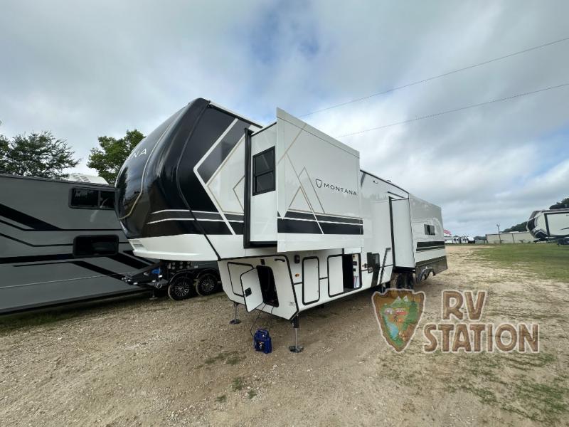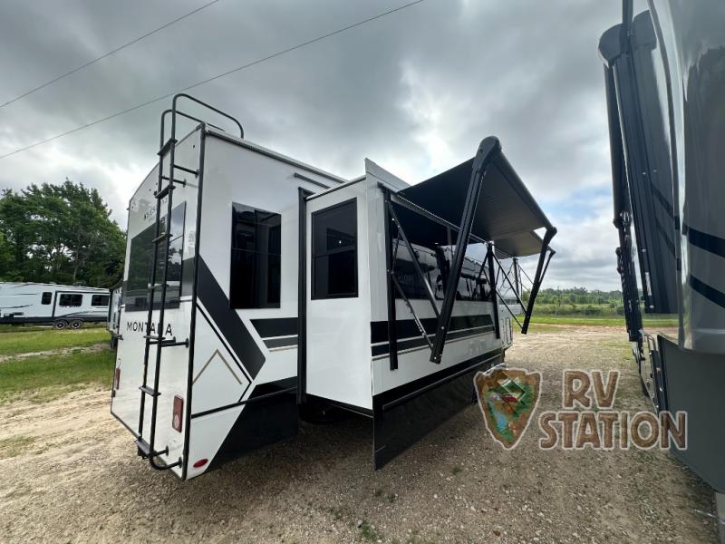 The Montana 3231CK features three slide-outs, significantly enhancing the living space and providing a roomy environment for relaxation and entertainment. Inside, you'll find accommodations for up to four people, ensuring a comfortable stay for family or friends. The interior is elegantly appointed with high-quality materials and finishes, creating a warm and inviting atmosphere. The well-equipped kitchen, complete with modern appliances, allows you to prepare meals with ease, while the cozy living area is perfect for unwinding after a day of exploration.