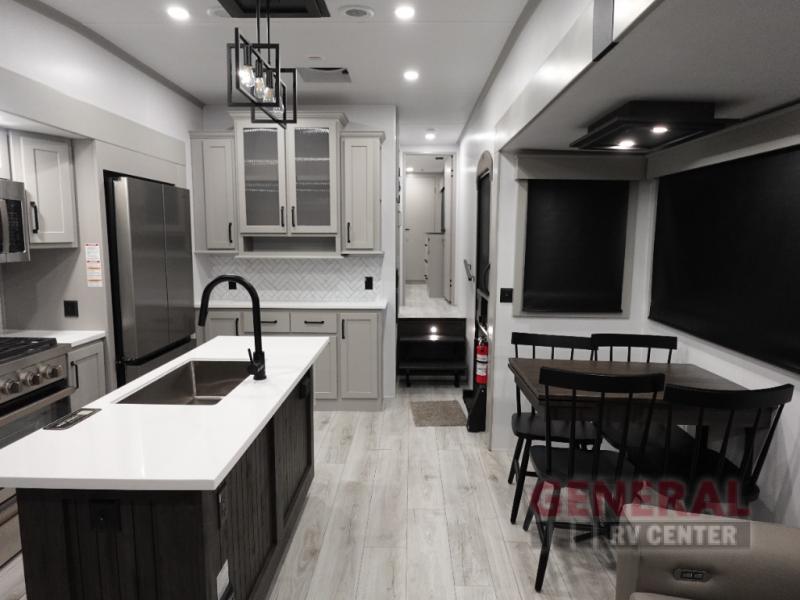 This beauty comes with three slide-outs, giving you extra room to stretch out and relax. Whether you're planning a weekend getaway or a cross-country road trip, you'll appreciate the spacious interior. The Montana High Country 331RL comfortably sleeps four, making it perfect for small families or couples who love to entertain guests. The living area is cozy and inviting, with plenty of seating and a layout that makes it easy to kick back and enjoy the ride.
