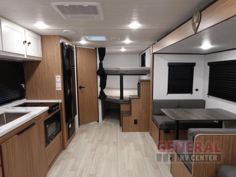 Inside, you'll find a cozy setup with all the essentials. The kitchen is equipped with modern appliances, perfect for whipping up meals after a day of exploring. The seating area is great for relaxing or enjoying a meal together, and the sleeping arrangements are versatile, ensuring everyone gets a good night's rest. At 26 feet long, this travel trailer strikes the perfect balance between spaciousness and maneuverability. Whether you're planning a weekend getaway or an extended road trip, the Keystone RV Passport Classic 260BHC is your ticket to adventure. Don't miss out on making unforgettable memories with this fantastic travel trailer!