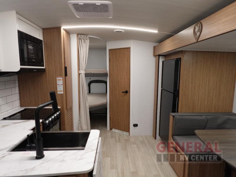 This travel trailer features one convenient slide-out, maximizing your living space without the hassle. Inside, you'll find room to sleep up to 8 people, making it ideal for family trips or a getaway with friends. The cleverly designed interior includes cozy sleeping arrangements, a functional kitchen, and a welcoming dining area, ensuring everyone has a comfortable spot to relax after a day of adventure.