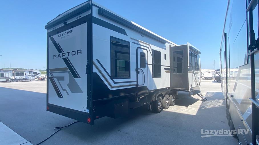 Looking for the ultimate adventure companion? Meet the 2026 Keystone RV Raptor 415 Fifth Wheel, your ticket to freedom and fun on the open road! This beast of an RV is all about living large, with three slide-outs that expand your living space to new heights. Whether you're planning a weekend getaway or a cross-country expedition, the Raptor 415 has got you covered.