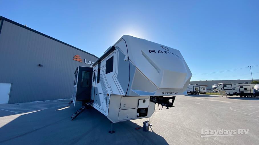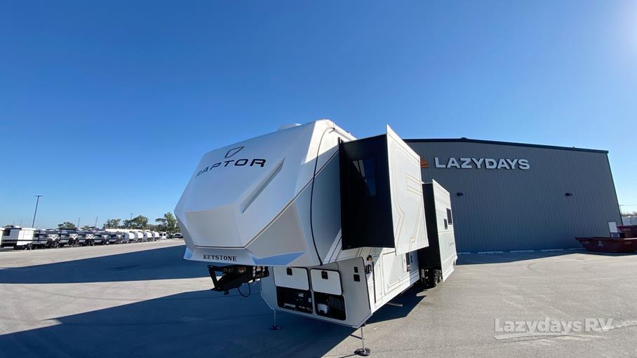 Discover the ultimate in luxury and adventure with the 2026 Keystone RV Raptor 430 Fifth Wheel. This top-of-the-line RV is designed for those who crave both comfort and excitement on the road. With a spacious length of 38 feet, the Raptor 430 offers ample room for all your travel needs, ensuring that every journey is as enjoyable as the destination itself. Its three slide-outs expand your living space, providing an open and airy environment perfect for entertaining or relaxing after a day of exploration.
