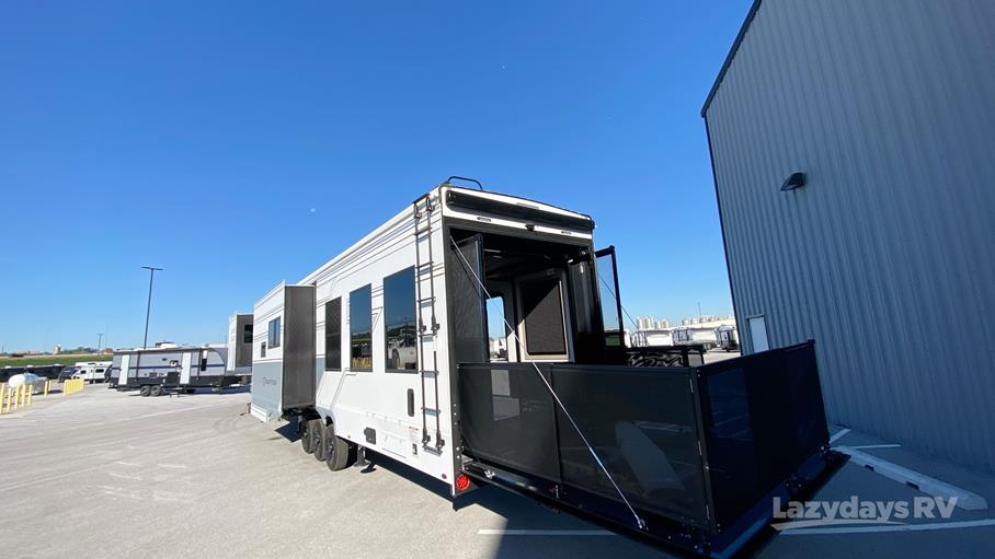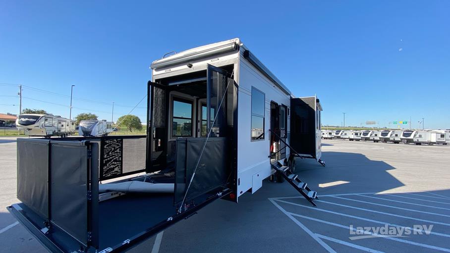 Step inside and be greeted by a modern, stylish interior that rivals any upscale home. The Raptor 430 boasts a fully-equipped kitchen with state-of-the-art appliances, making meal preparation a breeze. The luxurious living area is perfect for unwinding, featuring plush seating and a high-definition entertainment system. The master suite offers a tranquil retreat with a comfortable queen-sized bed and plenty of storage space, ensuring you have everything you need for extended trips.