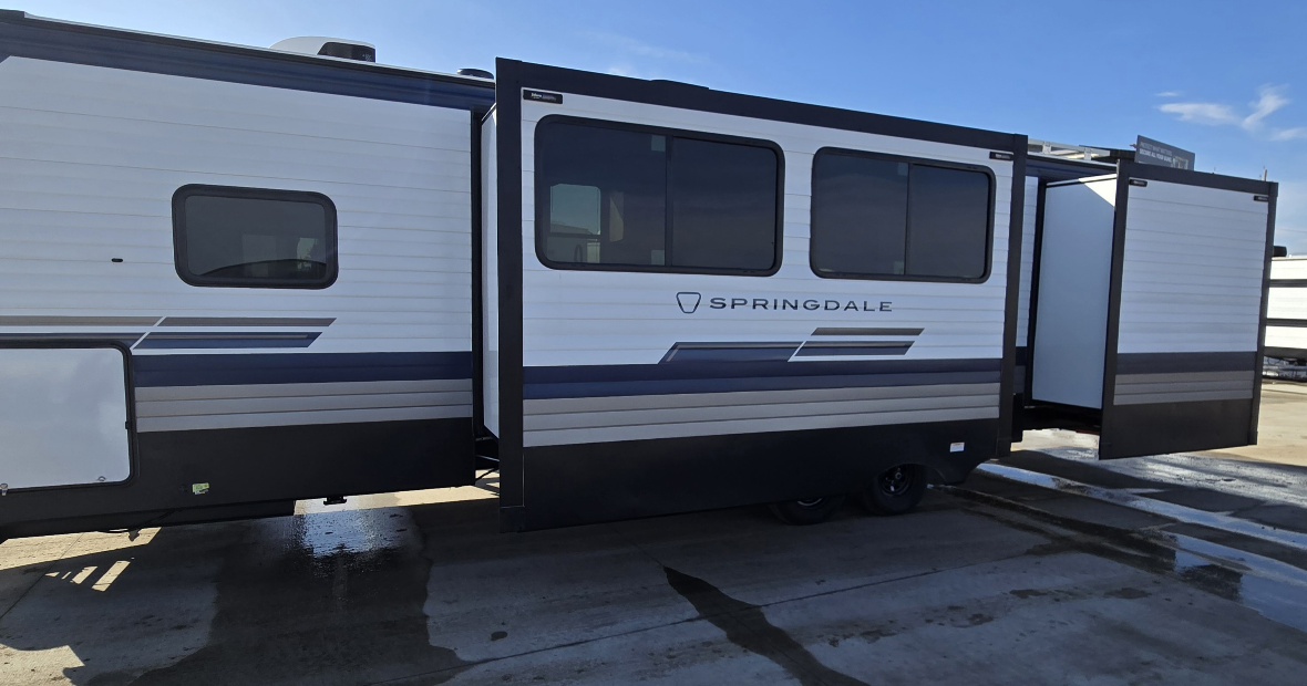 The Springdale Max 3100XBR features two slide-outs that expand your living space, offering plenty of room for family and friends. This RV can comfortably sleep up to 8 people, so whether you're planning a family vacation or a weekend getaway with friends, everyone will have a cozy place to rest. The interior is thoughtfully designed with modern amenities and stylish finishes, ensuring you have all the comforts of home while on the road.