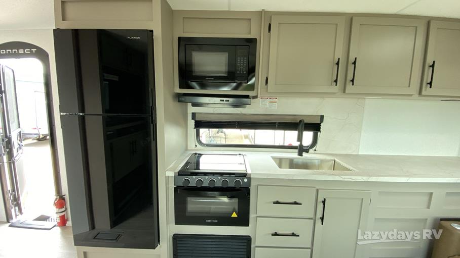 The KZ Connect C241RLK features a single slide-out, which significantly expands the interior living area, providing a comfortable environment for relaxation and entertainment. This travel trailer is thoughtfully designed to accommodate up to five occupants, making it an excellent option for family vacations or group adventures. The interior layout is optimized for convenience and comfort, featuring a well-appointed kitchen, a cozy dining area, and a spacious sleeping arrangement.