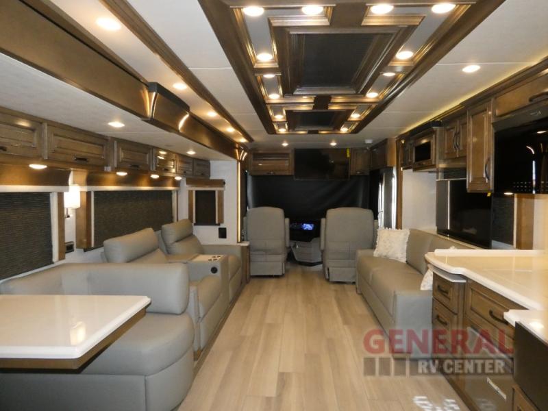 Step inside and be greeted by a spacious interior, thanks to its three slide-outs that expand your living area. The Dutch Star comfortably sleeps up to five people, making it perfect for family trips or getaways with friends. The well-appointed kitchen, complete with modern appliances, allows you to prepare gourmet meals on the go. Relax in the plush seating area or retreat to the master bedroom for a restful night's sleep. Every detail has been meticulously crafted to ensure your comfort and convenience.
