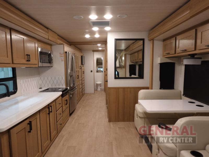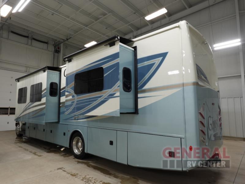This impressive RV features three slide-outs, significantly expanding the living space to ensure a roomy and comfortable environment for all occupants. With a length of 32 feet, the Ghost 38DS offers ample space for relaxation and entertainment. It comfortably sleeps up to six people, making it ideal for family vacations or trips with friends. The interior is thoughtfully designed with high-quality materials and finishes, ensuring a luxurious ambiance that feels like a home away from home.