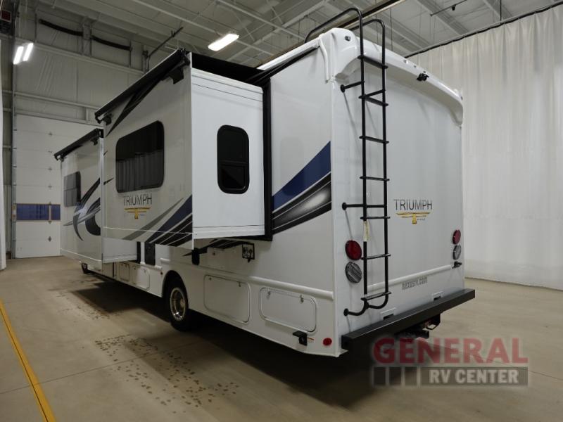 The Triumph 29T features two strategically placed slide-outs, expanding the living area to provide ample space for relaxation and entertainment. This model comfortably accommodates up to six people, making it an excellent choice for families or groups of friends. Inside, you'll find a well-appointed interior with high-quality furnishings and state-of-the-art appliances, ensuring that you have all the comforts of home while on the road. The thoughtfully designed layout includes a fully equipped kitchen, a cozy dining area, and a spacious sleeping arrangement, ensuring that every member of your party enjoys a restful night's sleep.