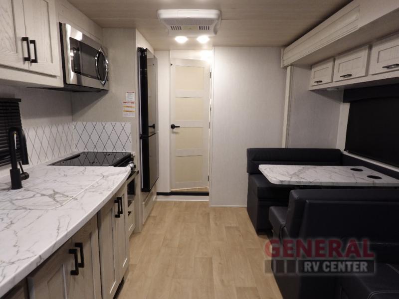 Step inside and experience the luxury of a thoughtfully designed interior that can comfortably sleep up to five people. The single slide-out expands your living space, providing ample room for relaxation and entertainment. Whether you're traveling with family or friends, everyone will appreciate the cozy sleeping arrangements and the well-appointed kitchen, perfect for preparing delicious meals on the go. The modern amenities and high-quality finishes ensure that every journey is as comfortable as it is memorable.