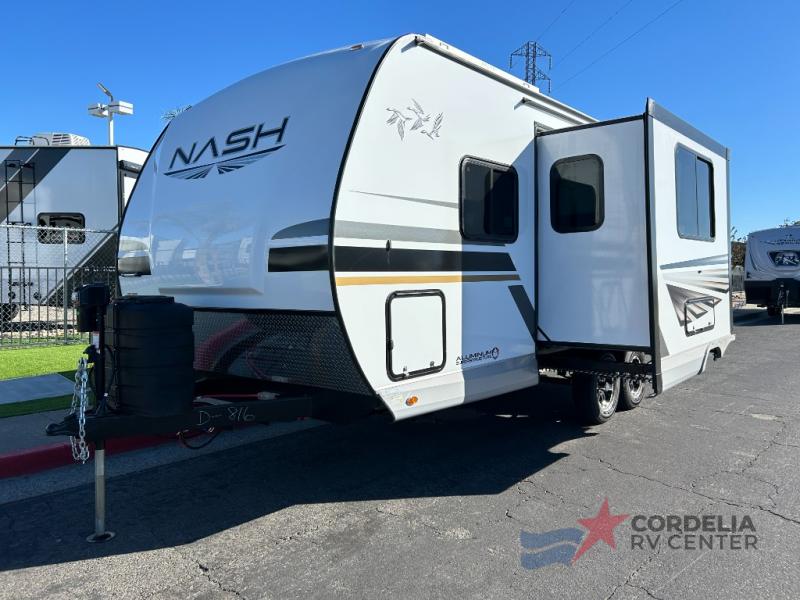 Step inside to find a thoughtfully designed interior that can comfortably sleep up to four people. The clever layout includes a slide-out that expands your living space, making it ideal for family trips or a getaway with friends. The Nash 23D is equipped with all the essentials, ensuring you have everything you need for a memorable journey. From the fully functional kitchen to the inviting sleeping quarters, every detail has been considered to enhance your travel experience.