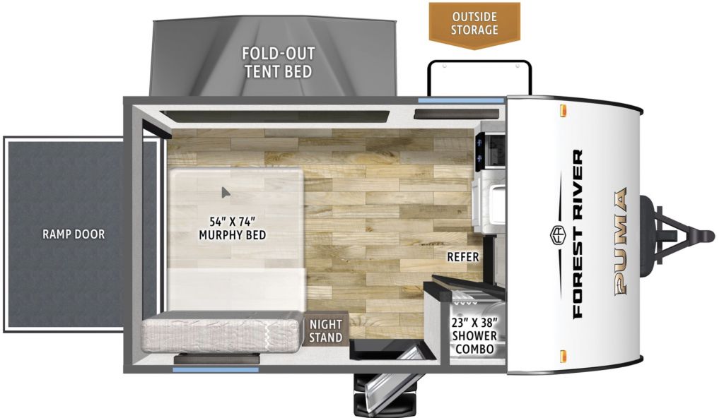 Inside, you’ll find a cleverly designed space that maximizes every inch. The Puma 141THCE is perfect for those who love to travel light but don’t want to compromise on comfort. It features a cozy sleeping area, a compact yet functional kitchen, and a versatile living space that can easily be transformed to suit your needs. Whether you’re cooking up a meal or relaxing after a day of exploring, this travel trailer has got you covered.