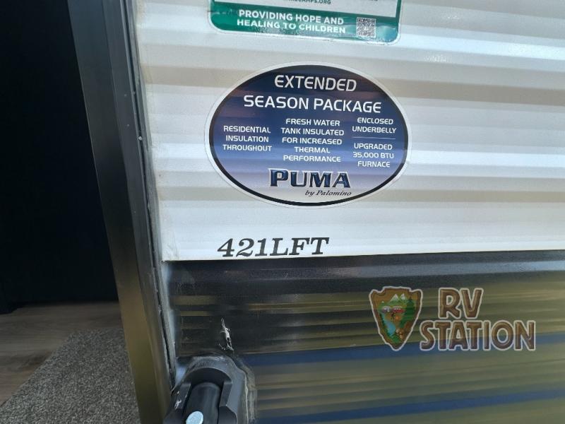 Introducing the 2026 Palomino Puma Destination 421LFT Park Model, the ultimate choice for those seeking a luxurious and spacious home away from home. This stunning RV is designed for comfort and convenience, featuring a length of 43 feet, making it perfect for extended stays or full-time living. With its sleek design and modern amenities, the Puma Destination 421LFT is your ticket to a life of adventure and relaxation. Step inside to discover a beautifully appointed interior with a generous living space. The open-plan living area boasts a comfortable seating arrangement, including a plush sofa and a cozy dinette, perfect for family meals or entertaining guests. The fully equipped kitchen features high-end appliances, including a large refrigerator, microwave, and oven, along with ample counter space and storage. The master bedroom offers a queen-sized bed and plenty of wardrobe space, ensuring a restful night's sleep. Additionally, the loft area provides extra sleeping quarters, making it ideal for families or visitors. The Puma Destination 421LFT is not just about comfort; it's also built for practicality. With a robust construction and high-quality materials, this RV is designed to withstand the elements and provide years of reliable service. The exterior includes a large awning for outdoor enjoyment, while the interior is equipped with efficient heating and cooling systems to keep you comfortable in any climate. Whether you're parked by a serene lake or nestled in the mountains, the 2026 Palomino Puma Destination 421LFT Park Model is your perfect retreat. Don't miss the opportunity to own this exceptional RV and start your journey today!
