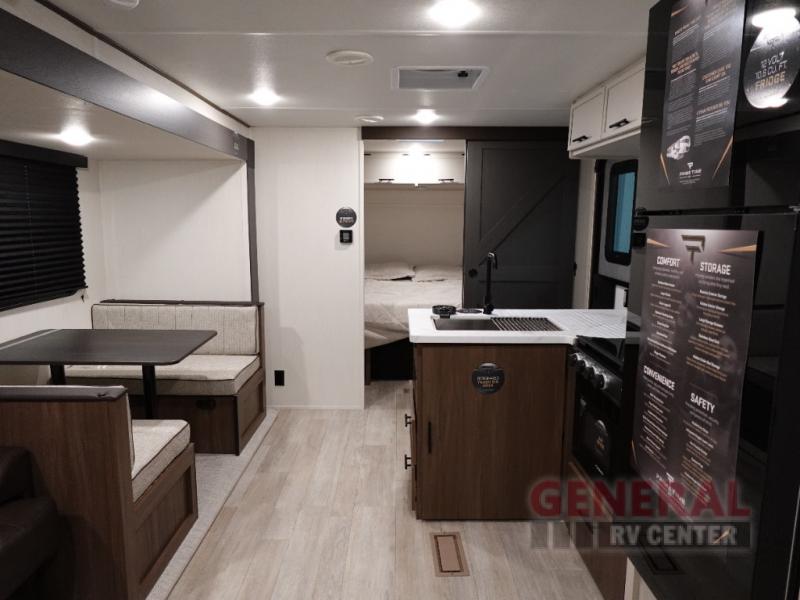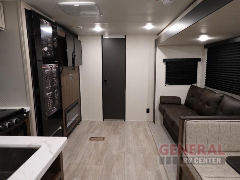 The Avenger 25RBS features a single slide-out, ingeniously expanding the living space to provide ample room for relaxation and entertainment. This model is thoughtfully designed to accommodate up to four people, making it perfect for small families or couples seeking a cozy retreat. The interior layout is optimized for convenience, featuring a well-appointed kitchen, a comfortable sleeping area, and a stylish bathroom, ensuring all the comforts of home are at your fingertips.