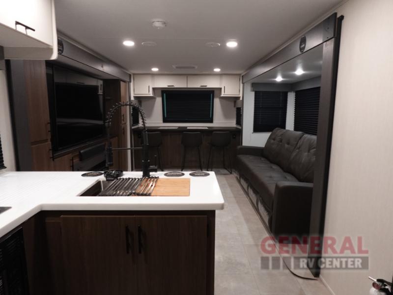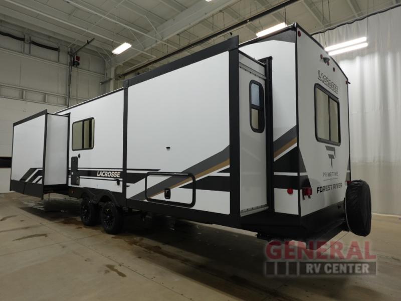 Inside, you'll find all the amenities you need for a comfortable stay. The modern kitchen is equipped with everything from a fridge to a microwave, so you can whip up your favorite meals on the go. The cozy sleeping quarters ensure a good night's rest after a day of adventure. Whether you're planning a weekend getaway or an extended road trip, this Prime Time RV LaCrosse 3450FB is your ticket to travel freedom. Don't miss out on the chance to own this fantastic travel trailer—it's ready and waiting for your next journey!