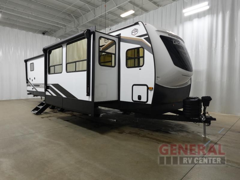 This beauty boasts three spacious slide-outs, giving you plenty of room to stretch out and relax. Whether you're lounging in the living area or cooking up a storm in the kitchen, you'll appreciate the extra space. The LaCrosse 3450FB comfortably sleeps four, making it ideal for small families or couples looking to explore the great outdoors. At 32 feet in length, it's the perfect size for maneuvering through campsites while still offering all the comforts of home. Plus, with a weight of just over 4,000 kilograms, it's easy to tow with most vehicles.
