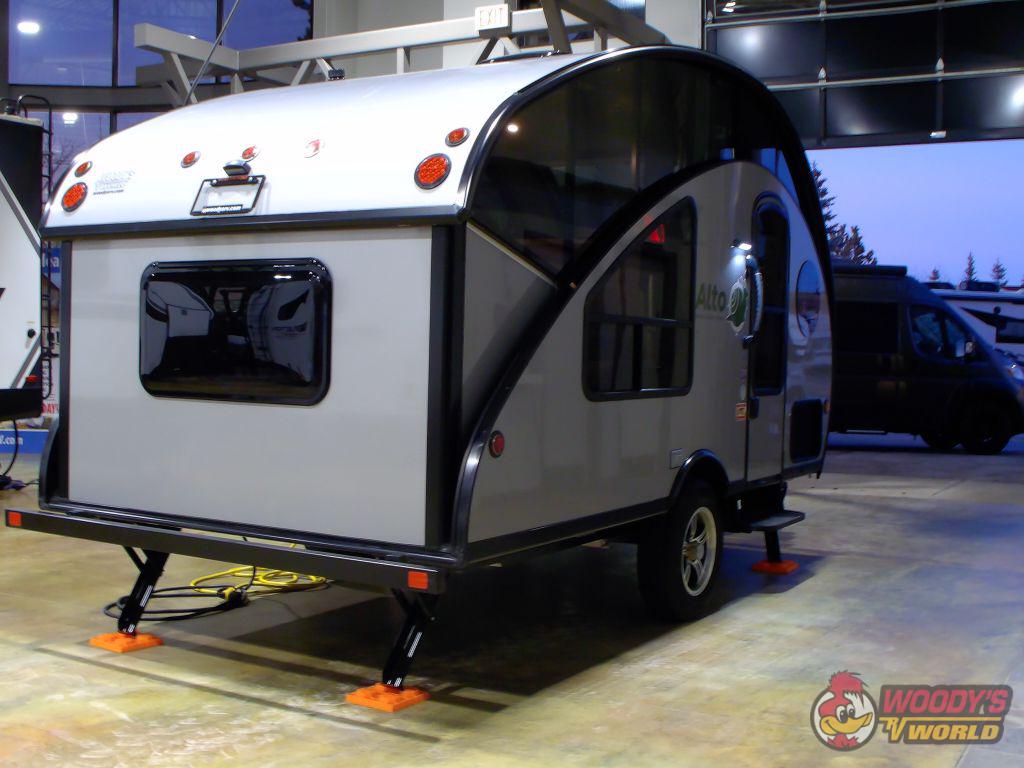 Inside, the Alto R1723-SH offers a cozy and efficient layout that comfortably sleeps up to three people. Whether you're embarking on a solo journey, a romantic getaway, or a small family adventure, this travel trailer provides the perfect retreat. The interior is thoughtfully designed to maximize space, featuring modern amenities and ample storage solutions to keep your living area organized and clutter-free. Enjoy the convenience of a compact kitchen, a dining area that converts into a sleeping space, and a comfortable bed, ensuring you have everything you need for a memorable trip.