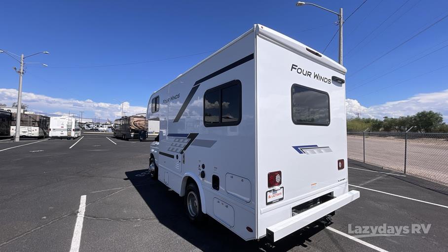 Inside, the Four Winds 19Z comfortably sleeps up to four people, making it perfect for family trips or a getaway with friends. The interior is thoughtfully designed to maximize space and functionality, featuring a cozy sleeping area, a fully equipped kitchenette, and a compact bathroom with all the essentials. The RV's smart layout ensures that every inch is utilized efficiently, providing ample storage for all your travel necessities.