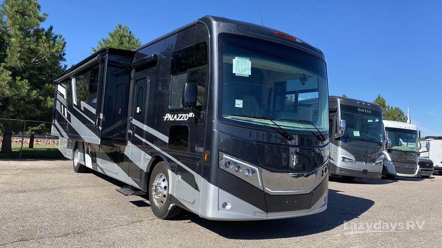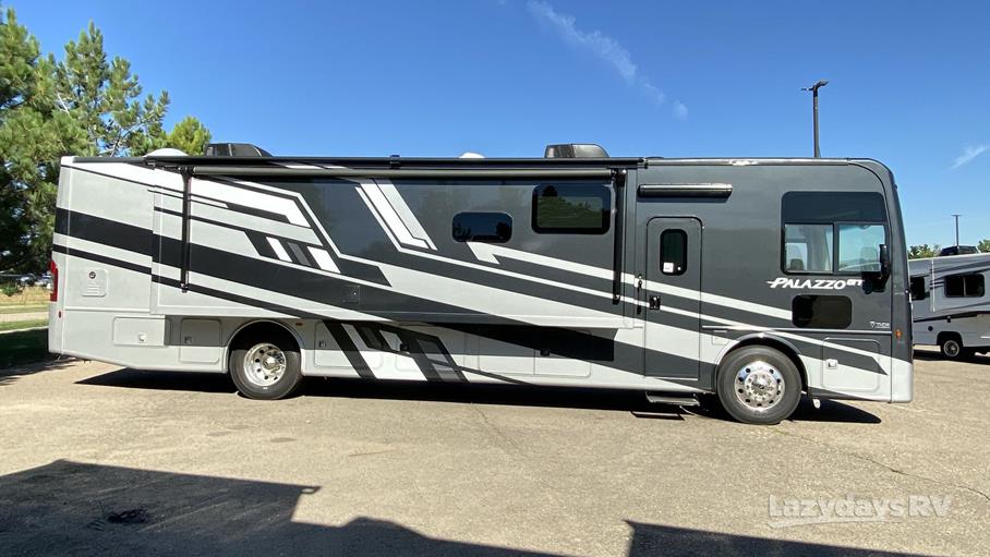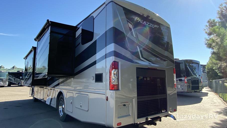Discover the ultimate in luxury travel with the 2026 Thor Motor Coach Palazzo 37.5 Class A RV. This exquisite motorhome is designed for those who crave adventure without compromising on comfort. With a length of 37 feet, the Palazzo offers ample space for you and your loved ones to explore the open road in style. Its three slide-outs expand the living area, providing a spacious and inviting environment that feels just like home.