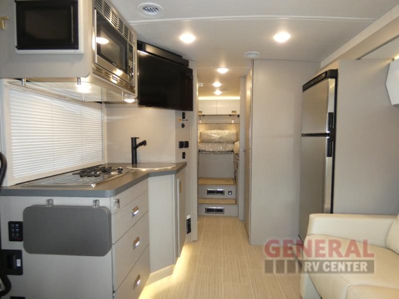 The Navion 24R features a single slide-out that expands the living area, creating a welcoming environment for relaxation and entertainment. Inside, you'll find sleeping accommodations for up to four people, making it ideal for family trips or outings with friends. The interior is thoughtfully designed with high-quality materials and finishes, ensuring both durability and style. The well-equipped kitchen, cozy dining area, and comfortable sleeping quarters make this RV a true home away from home.