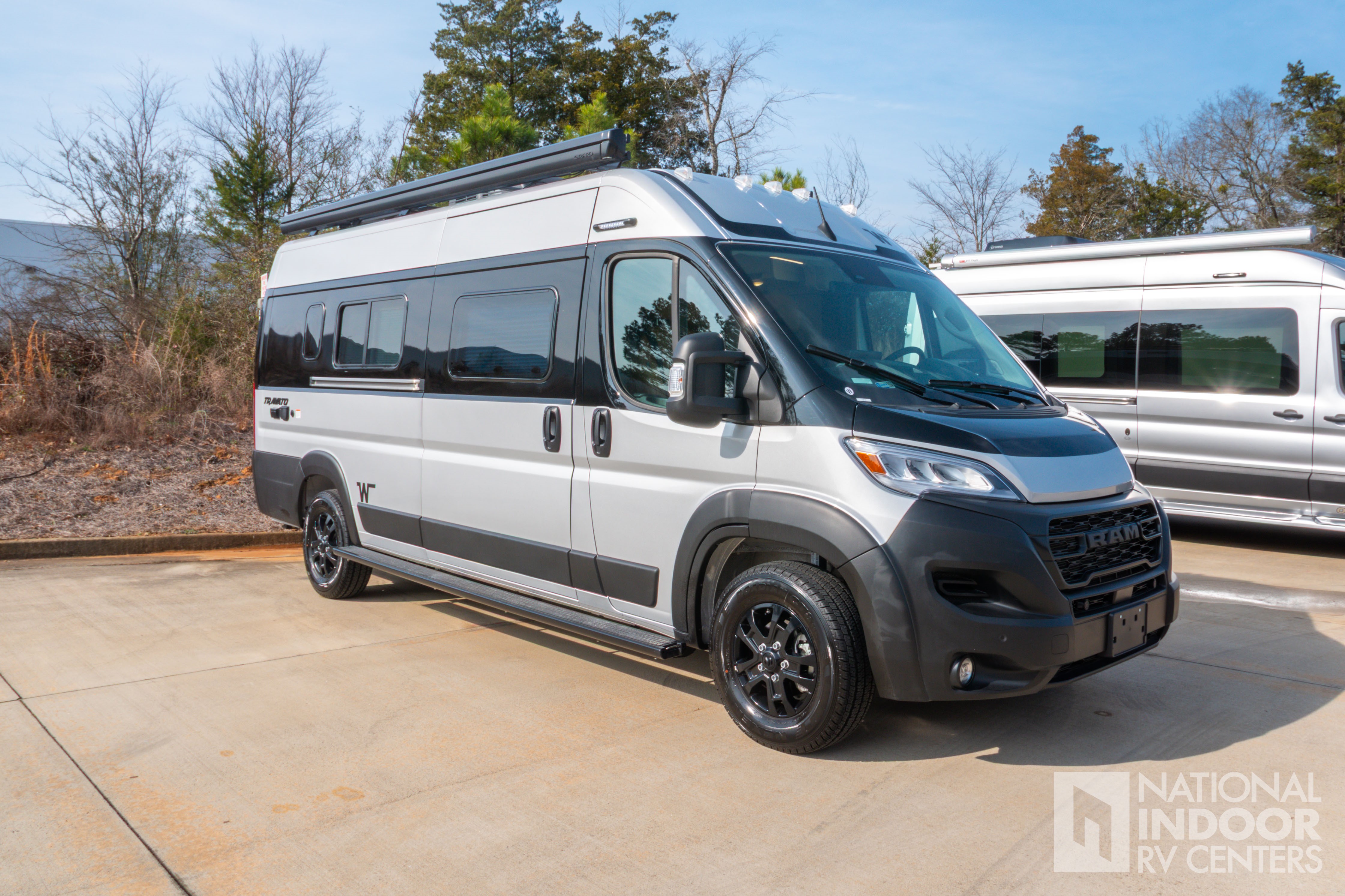 Inside, you'll find a cozy and efficient layout that maximizes every square meter of space. The Travato 59K is equipped with all the essentials for comfortable living on the go. The kitchen features a compact yet functional design, complete with a refrigerator, microwave, and two-burner stove, perfect for whipping up your favorite meals. The sleeping area offers a comfortable bed that ensures a good night's rest after a day of exploring. Plus, the bathroom is cleverly designed with a shower, toilet, and sink, so you can freshen up wherever your travels take you.