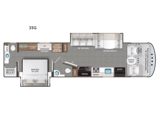 Rent to own typically helps people who might not qualify for bank financing the option to buy an RV. Most RV loans require the buyer to have a down payment and a good credit score. On the other hand, rent-to-own RV loans only require proof of residence and income. Learn more about rent to own.