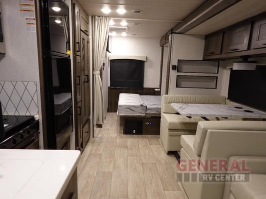 Rent to own typically helps people who might not qualify for bank financing the option to buy an RV. Most RV loans require the buyer to have a down payment and a good credit score. On the other hand, rent-to-own RV loans only require proof of residence and income. Learn more about rent to own.