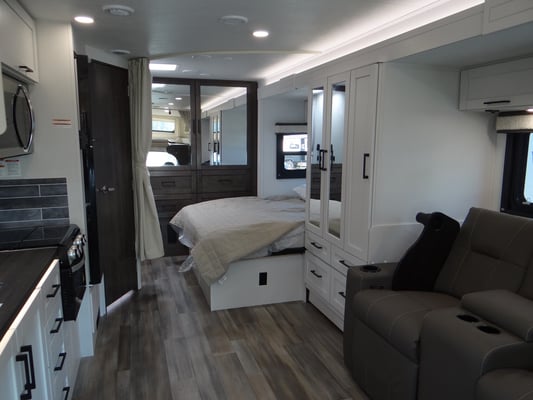 Rent to own typically helps people who might not qualify for bank financing the option to buy an RV. Most RV loans require the buyer to have a down payment and a good credit score. On the other hand, rent-to-own RV loans only require proof of residence and income. Learn more about rent to own.