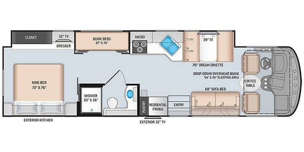 Rent to own typically helps people who might not qualify for bank financing the option to buy an RV. Most RV loans require the buyer to have a down payment and a good credit score. On the other hand, rent-to-own RV loans only require proof of residence and income. Learn more about rent to own.