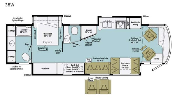 Rent to own typically helps people who might not qualify for bank financing the option to buy an RV. Most RV loans require the buyer to have a down payment and a good credit score. On the other hand, rent-to-own RV loans only require proof of residence and income. Learn more about rent to own.
