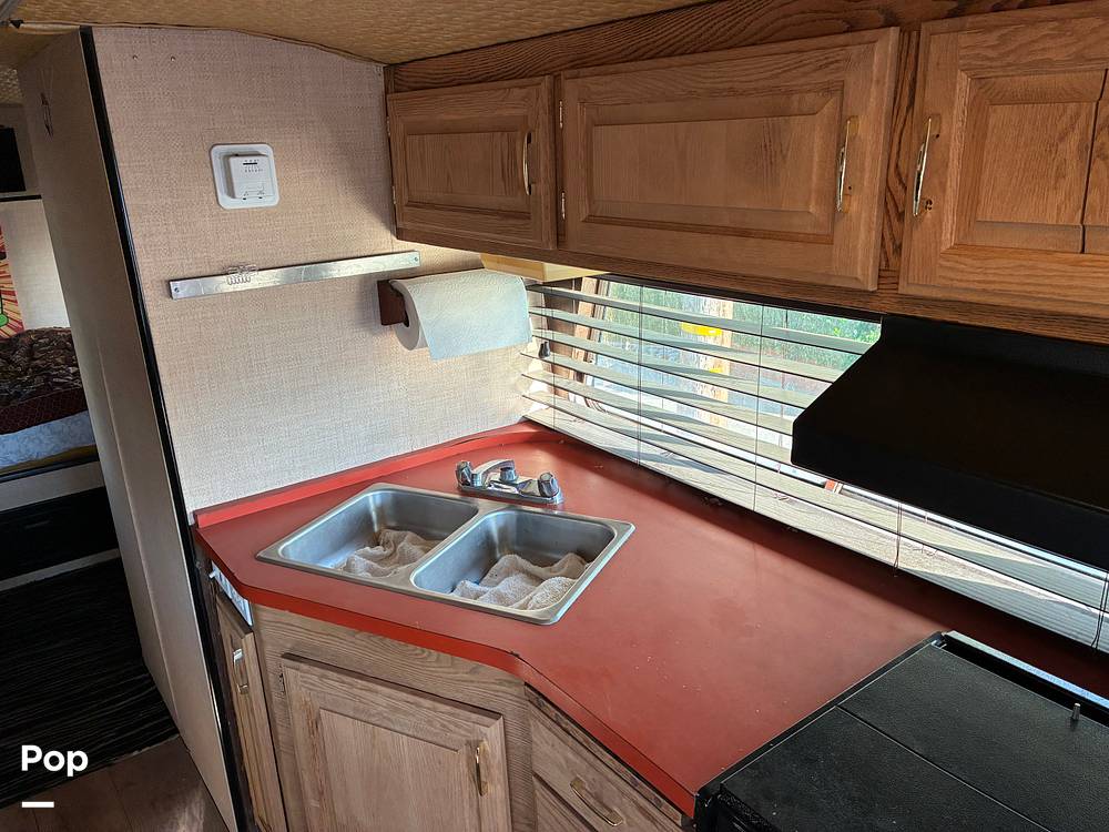 Inside, you'll find a spacious and thoughtfully designed interior that comfortably sleeps up to six people. Whether you're planning a family road trip or a getaway with friends, this RV offers ample space for everyone to relax and enjoy. The living area is cozy and inviting, featuring plush seating and a dining area where you can share meals and create lasting memories. The kitchen is equipped with all the essentials, allowing you to prepare your favorite meals on the go.