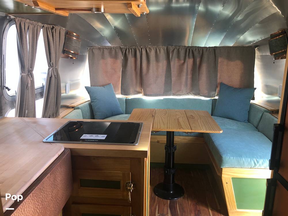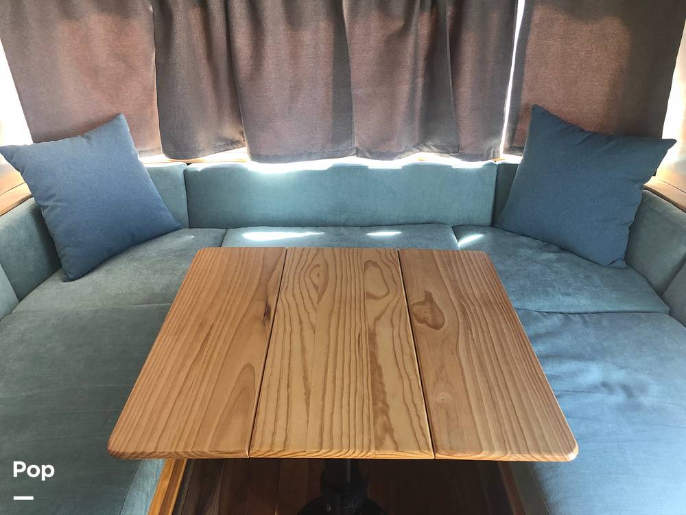 Step inside to discover a meticulously maintained interior that harmoniously combines retro aesthetics with contemporary conveniences. The living area is thoughtfully arranged to maximize space and comfort, featuring plush seating that effortlessly converts into sleeping quarters. The kitchen is equipped with essential amenities, ensuring that meal preparation is both convenient and enjoyable. Ample storage solutions are seamlessly integrated throughout, allowing you to bring along all the necessities for your journey.
