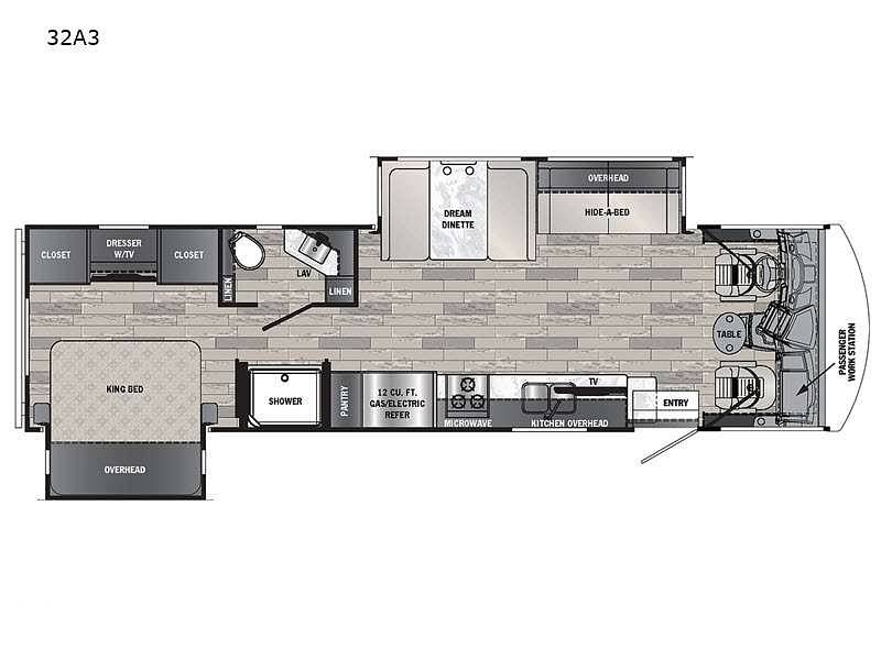 Measuring 27 feet in length, the Georgetown 32 Class A provides ample space for relaxation and entertainment. Inside, you'll find a thoughtfully designed layout that includes a cozy sleeping area, a fully equipped kitchen, and a comfortable living space. The sleeping arrangements are versatile, with a master bedroom, convertible dinette, and a sofa bed, ensuring everyone has a restful night's sleep. The kitchen features essential appliances, including a refrigerator, stove, and microwave, allowing you to prepare meals with ease.