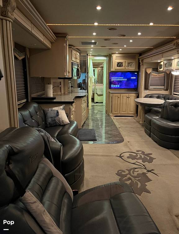 Measuring an impressive 38 feet in length, this RV provides ample space for everyone to relax and enjoy the ride. Inside, you'll find a beautifully appointed living area with plush seating, a fully equipped kitchen, and a dining space that makes meal times a breeze. The sleeping quarters are equally inviting, featuring comfortable beds that promise a restful night's sleep after a day of adventure. Plus, with plenty of storage throughout, you can bring along all the essentials and more.