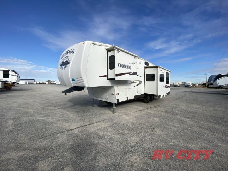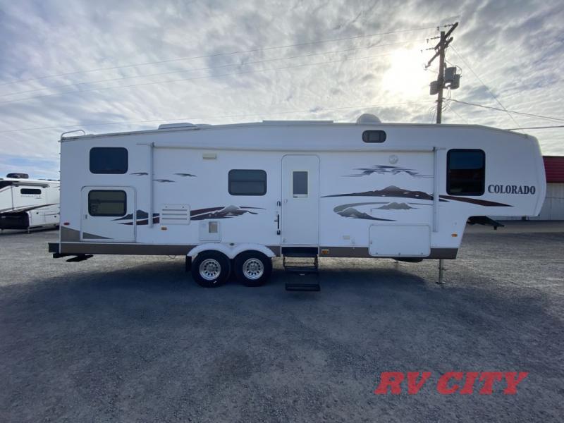 Introducing the 2007 Dutchmen RV Colorado 29BH-M5-BS Fifth Wheel, a robust and spacious travel companion designed to elevate your camping experience. With a length of 28 feet, this RV offers ample space for family and friends, comfortably accommodating up to 10 people. Its thoughtful design includes two slide-outs, providing additional living space and ensuring a comfortable and enjoyable stay, whether you're on a weekend getaway or an extended road trip.