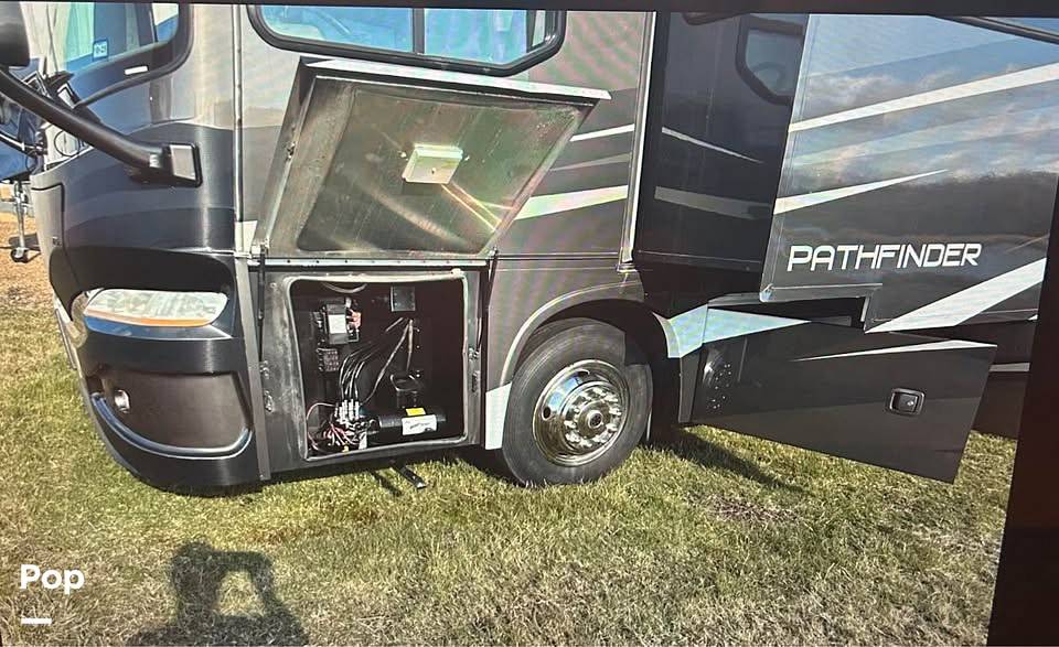 Measuring an impressive 33 feet in length, the Pathfinder 377DS offers plenty of room to stretch out and relax. Inside, you'll find a well-appointed living area with plush seating, a fully equipped kitchen, and a dining space perfect for enjoying meals together. The thoughtful layout ensures that everything you need is within easy reach, making your travels as convenient as they are enjoyable. The bathroom is designed with comfort in mind, featuring a roomy shower and all the amenities you need to freshen up after a day of adventure.