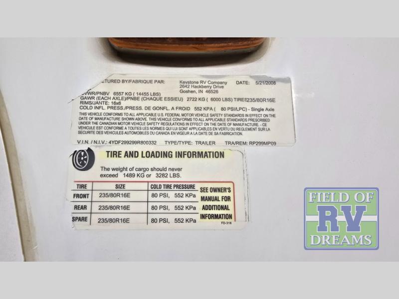 This RV is not just about space and comfort; it also embodies the quality and reliability that Keystone is known for. The Raptor 299MP is a testament to thoughtful engineering and design, offering a seamless blend of practicality and luxury. Whether you're a seasoned traveler or new to the RV lifestyle, this Fifth Wheel promises to deliver an exceptional experience on the road. Embrace the freedom of travel with the 2009 Keystone RV Raptor 299MP, where every journey becomes a memorable adventure.