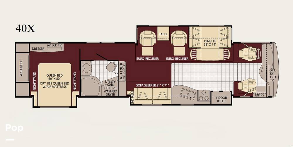 Measuring an impressive 34 feet in length, this RV offers ample space for living and entertaining. The well-appointed interior features a modern kitchen with high-quality appliances, a comfortable living area, and a private master suite, ensuring that every journey is as enjoyable as the destination. The Discovery's thoughtful design includes plenty of storage space, allowing you to bring along all the essentials for your adventures. Whether you're parked by a serene lakeside or nestled in a bustling campground, the Fleetwood Discovery provides a welcoming retreat.