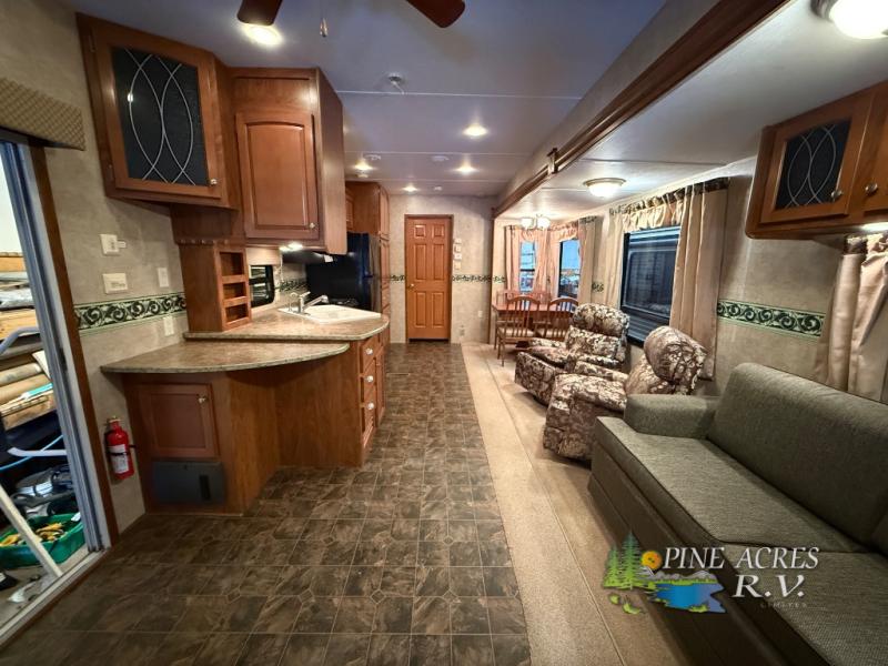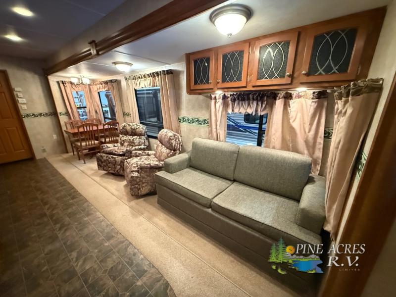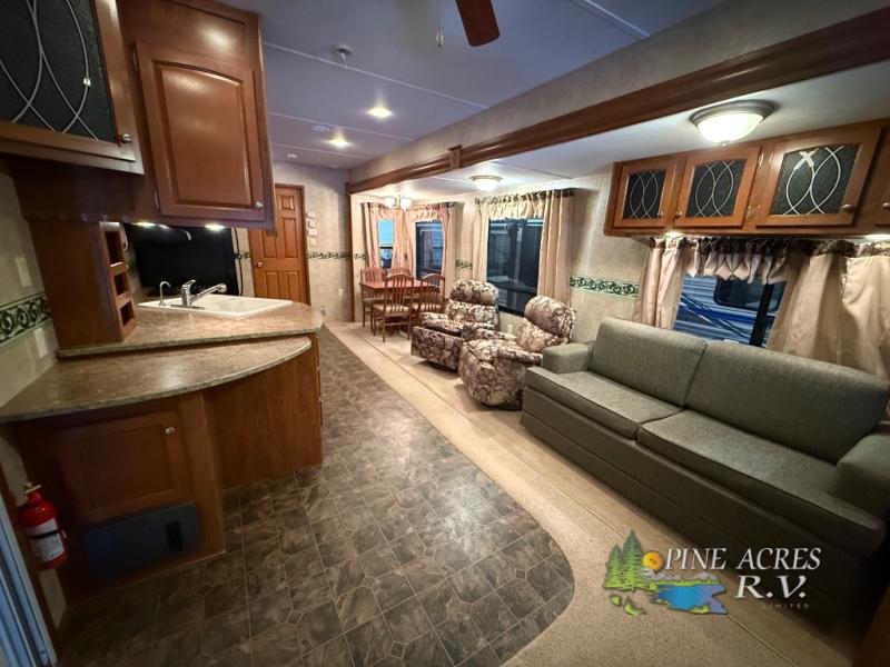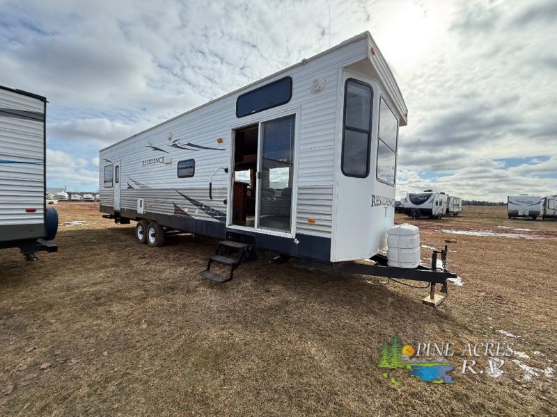 Introducing the 2010 Keystone RV Residence 401FE Park Model, a perfect blend of comfort and functionality for those seeking a home away from home. This meticulously maintained RV offers a spacious and inviting living environment, thanks to its two slide-outs that significantly enhance the interior space. With a length of 33 feet, this park model is designed to provide ample room for relaxation and entertainment, making it an ideal choice for both short getaways and extended stays.
