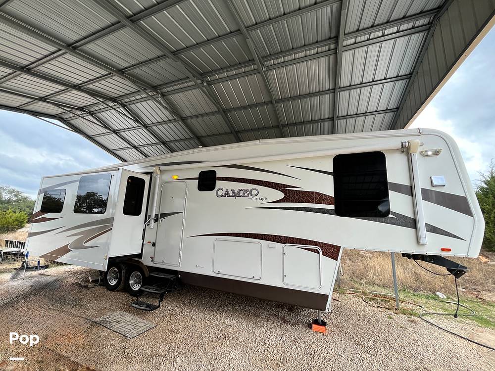 Discover the perfect blend of comfort and adventure with the 2011 Carriage Cameo 35SB3 Fifth Wheel. This meticulously maintained RV is your ticket to exploring the open road without sacrificing the comforts of home. With a spacious interior that comfortably sleeps four, this RV is ideal for families or couples seeking a luxurious getaway. Its thoughtful design and high-quality craftsmanship ensure a relaxing and enjoyable experience wherever your travels take you.