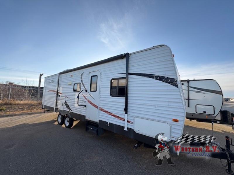 Introducing the 2011 KZ Sportsmen S318BH Travel Trailer, a reliable and spacious option for those seeking adventure on the open road. This travel trailer, measuring an impressive 32 feet in length, is designed to accommodate families and groups with ease, offering a comfortable and functional living space for all your travel needs.
