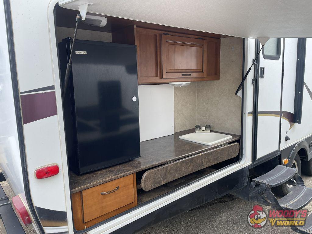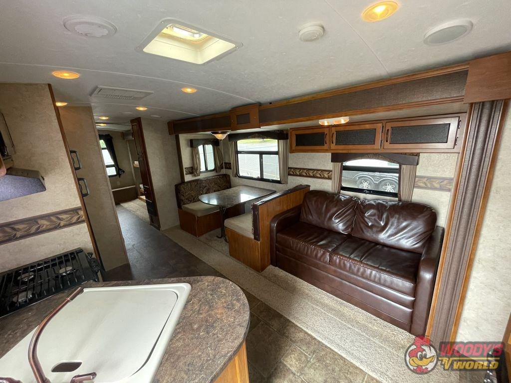 Step inside to discover a thoughtfully designed interior that maximizes every centimeter of space. The cozy living area features a plush seating arrangement, ideal for relaxing after a day of exploring. The kitchen is equipped with all the essentials, including a refrigerator, microwave, and a three-burner stove, making meal prep a breeze. The dining area comfortably seats your crew, ensuring everyone has a spot to enjoy meals together. With a sleeping capacity for up to 8 people, thanks to the bunkhouse, queen bed, and convertible sofa, everyone can rest easy.